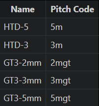 Truy cập mục “Belts” → chọn loại đai và bước răng phù hợp (HTD, GT2, v.v.).