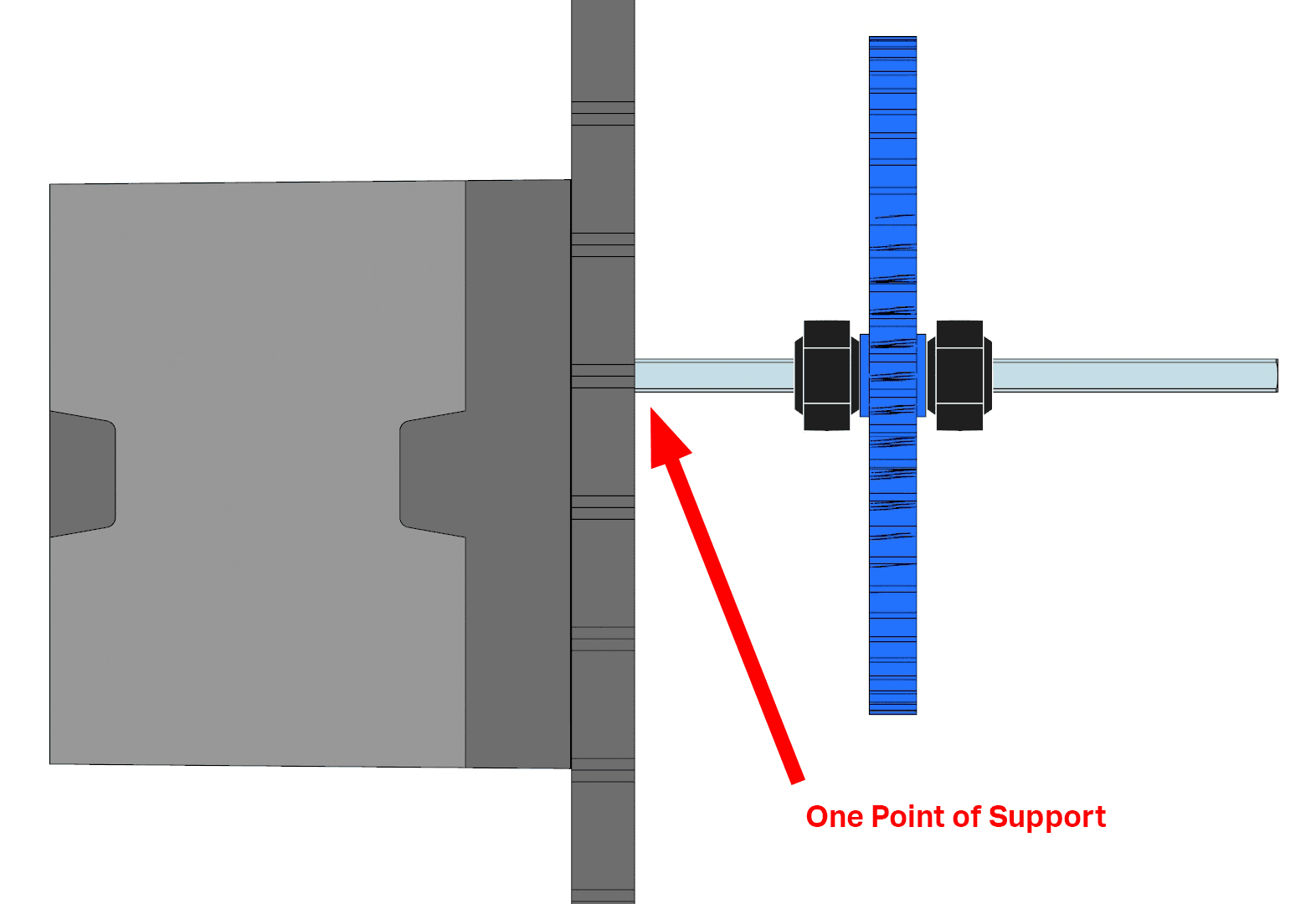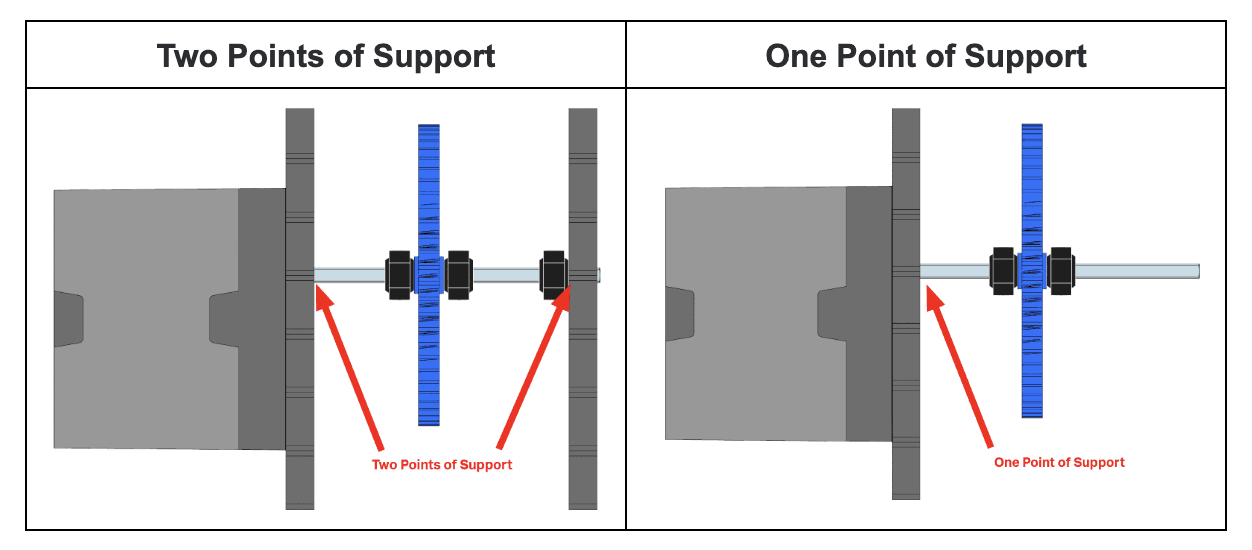 Đối với nhiều lắp ráp sử dụng trục, rất quan trọng phải cung cấp ít nhất hai điểm đỡ song song (two parallel points of support).