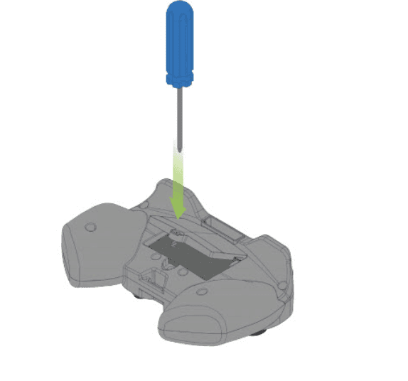 Sơ đồ một tua vít Phillips đang được dùng để siết vít nắp pin của Controller.