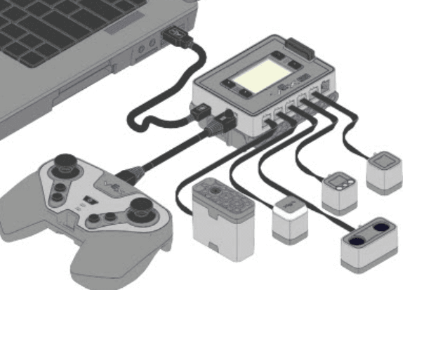 Sau khi lắp pin, Controller cần được sạc. Có hai cách đơn giản để sạc: sạc qua cổng USB hoặc sạc bằng cách nối Controller với Robot Brain.