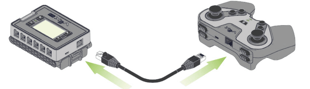 Sau khi Robot Brain và Controller đều đã có pin được sạc và lắp Smart Radios, bạn cần ghép cặp hai thiết bị để thiết lập kết nối. Việc này được thực hiện bằng cách nối cáp (tether) giữa hai thiết bị và bật nguồn Robot Brain.