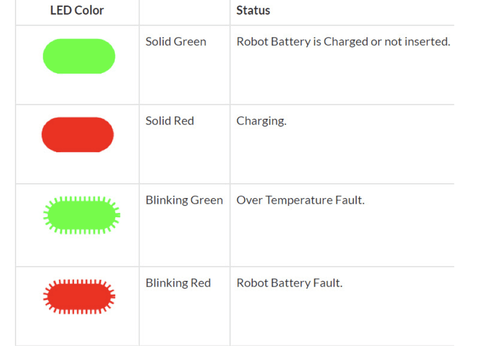 – Đèn đỏ nhấp nháy: lỗi pin Robot Brain.
