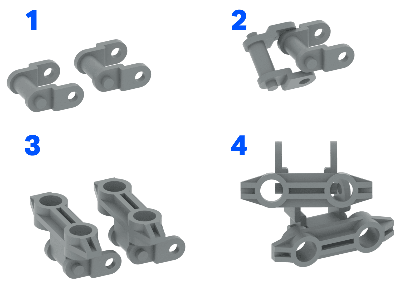 Sơ đồ 4 bước lắp xích và băng tải xích.