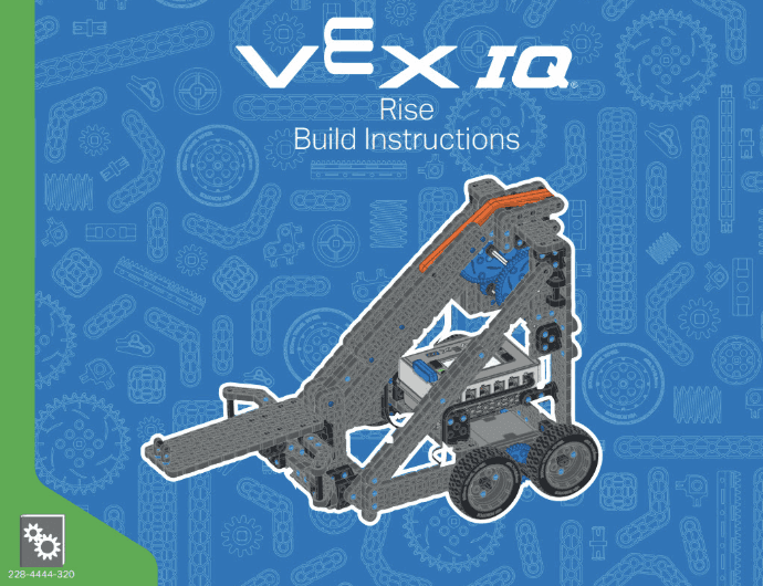 Trang bìa trước của Rise Hero Bot build instructions. Rise là Hero Bot cho VEX IQ Challenge mùa giải 2020–2021 với chủ đề Rise Above.