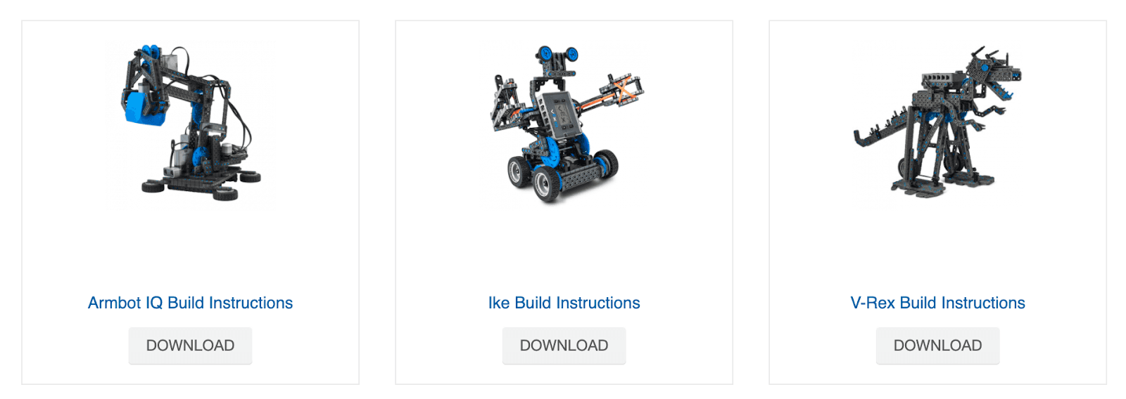 Một loại hướng dẫn lắp robot được gọi là Builds. Một số được gọi là ‘Hero’ builds, đây là các robot khởi đầu cho VEX IQ Challenge.