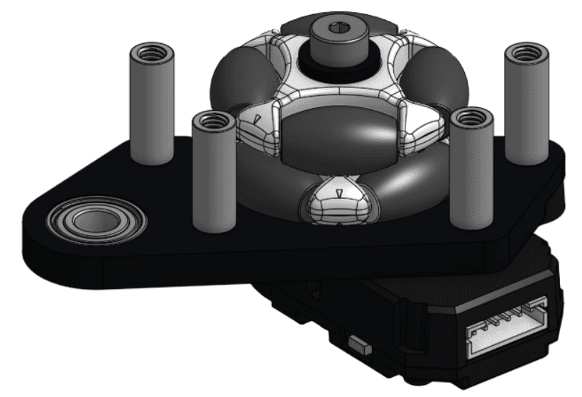 8 - Căn chỉnh (align) các rãnh khía (notches) của lỗ (bore) của bánh xe Rotacaster 35mm Omni Wheel (Rotacaster 35mm Omni Wheel) với các rãnh khía trên Wheel Insert 1 và ép (press) bánh xe lên insert.