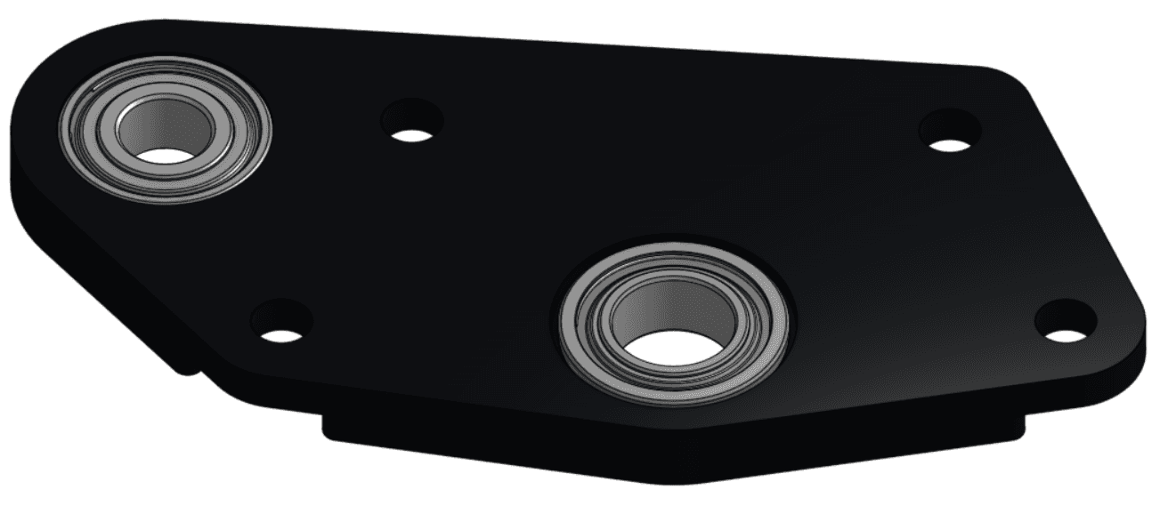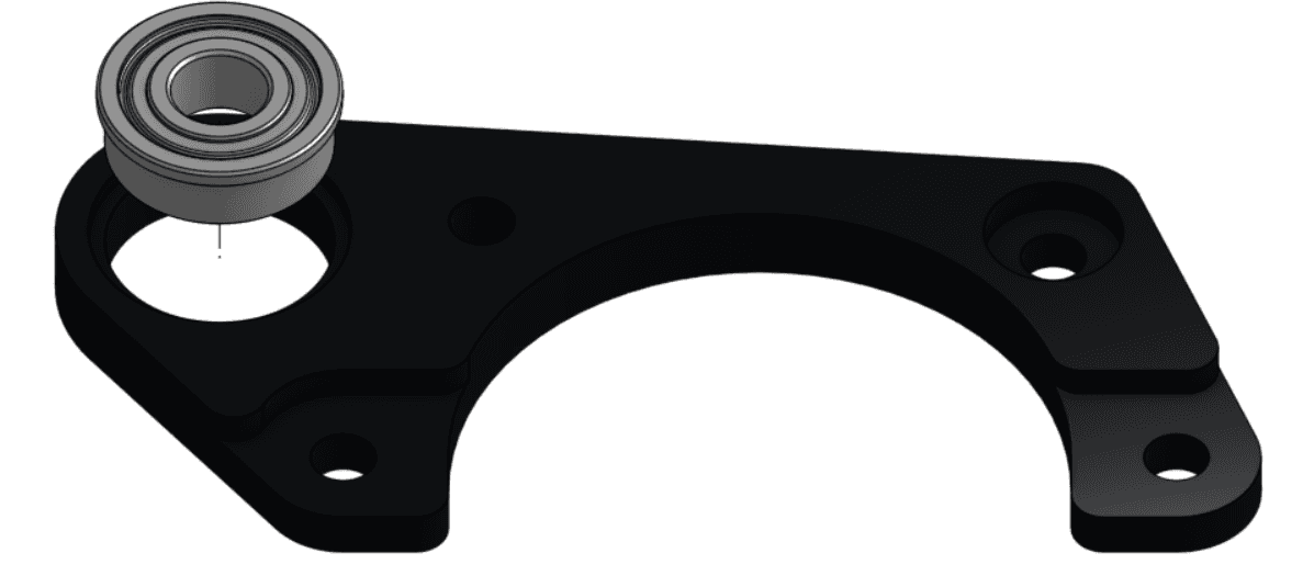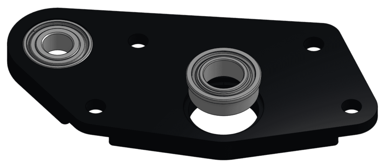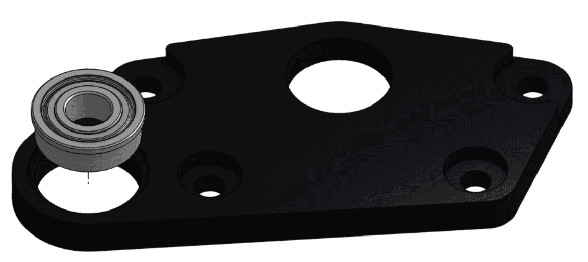 2 - Ép (press) một ổ bi có gờ (flanged bearing) ID 6 mm / OD 14 mm vào lỗ lớn phía ngoài (outer large hole) trên Plate 2, ở phía có phần nhô ra (overhanging portion) nằm trong lỗ ổ bi (bearing hole).