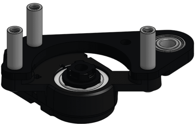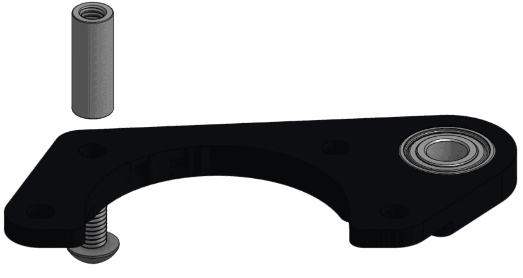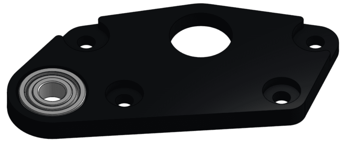 3 - Ép (press) một ổ bi có gờ (flanged bearing) ID 8 mm / OD 14 mm vào lỗ lớn ở giữa (central large hole) trên Plate 2, ở phía có phần nhô ra (overhanging portion) nằm trong lỗ ổ bi (bearing hole).