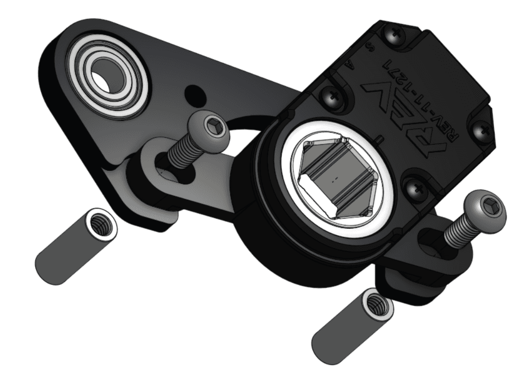 Khi bắt (screw) REV Encoder lên tấm (plate), hãy giữ bộ vít/trụ giãn cách (screw/standoff) đầu tiên hơi lỏng, và chỉ siết chặt cuối cùng (final tightening) sau khi cả hai bộ trụ giãn cách/vít (standoffs/screws) đã được lắp xong.