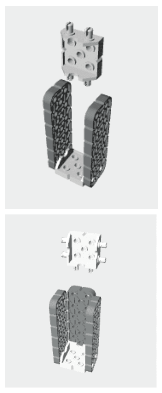 Dùng để kết nối một linh kiện với hai linh kiện khác, ví dụ như gắn một gá góc vào một thanh 2X, sau đó gắn thêm một thanh 1X.