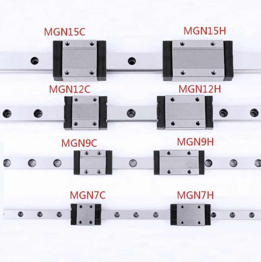 All different sizes of MGN slides (Tất cả các kích cỡ thanh trượt MGN)