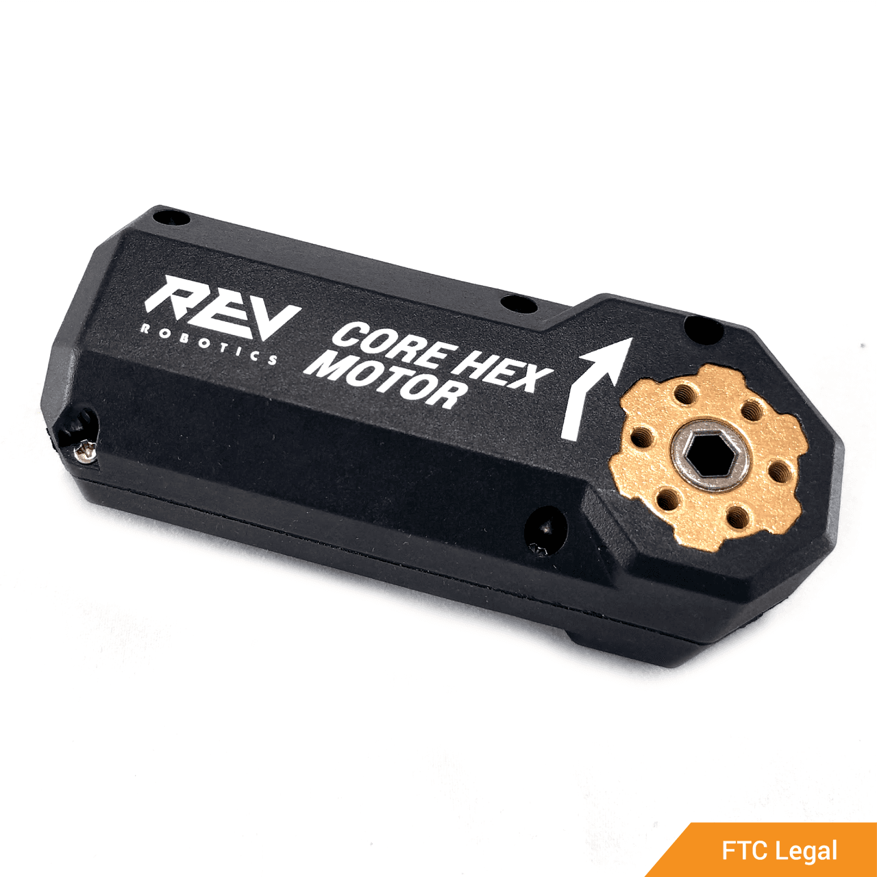 Động cơ Core Hex, được REV Robotics sản xuất, khác với các động cơ dòng RS-555 tiêu chuẩn thường được sử dụng bởi các đội FTC®. Động cơ này có thiết kế góc 90° (trục ra vuông góc với thân động cơ) và không có sẵn trục đầu ra.Vì vậy, các đội phải tự cắt trục lục giác 5mm theo chiều dài phù hợp với nhu cầu sử dụng. Core Hex Motor có tỉ số truyền chậm (72:1), giúp tăng mô-men xoắn nhưng giảm tốc độ quay, và công suất thấp hơn đáng kể so với các động cơ dòng RS-555. Loại động cơ này phù hợp cho các cơ cấu nhẹ hoặc ứng dụng không yêu cầu công suất cao trong robot FTC.