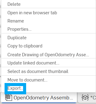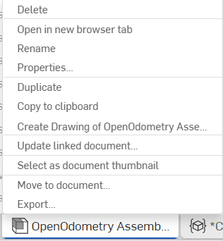 1. Nhấp chuột phải vào tab “OpenOdometry Assembly” ở phía dưới màn hình