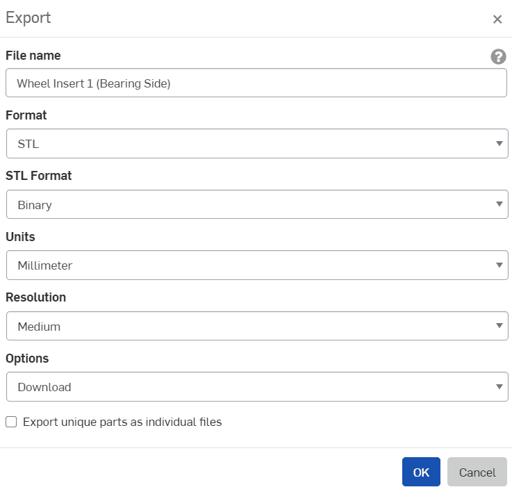 4. Chọn định dạng STL và tiến hành xuất