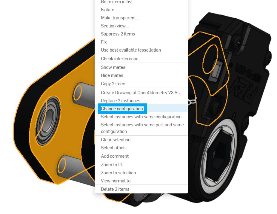 Trong bản cập nhật mới của mô-đun OpenOdometry, chúng tôi đã tạo một tệp CAD có thể cấu hình (configurable CAD) trong Onshape. Nếu bạn chưa quen với thuật ngữ configurable, thì nó tương tự như tham số (parameters) hoặc biến (variables) trong các phần mềm CAD khác.