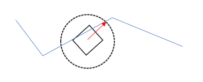 “Nhìn trước” dọc theo đường đi để tìm điểm giao (intersection) giữa vòng tròn và đường
