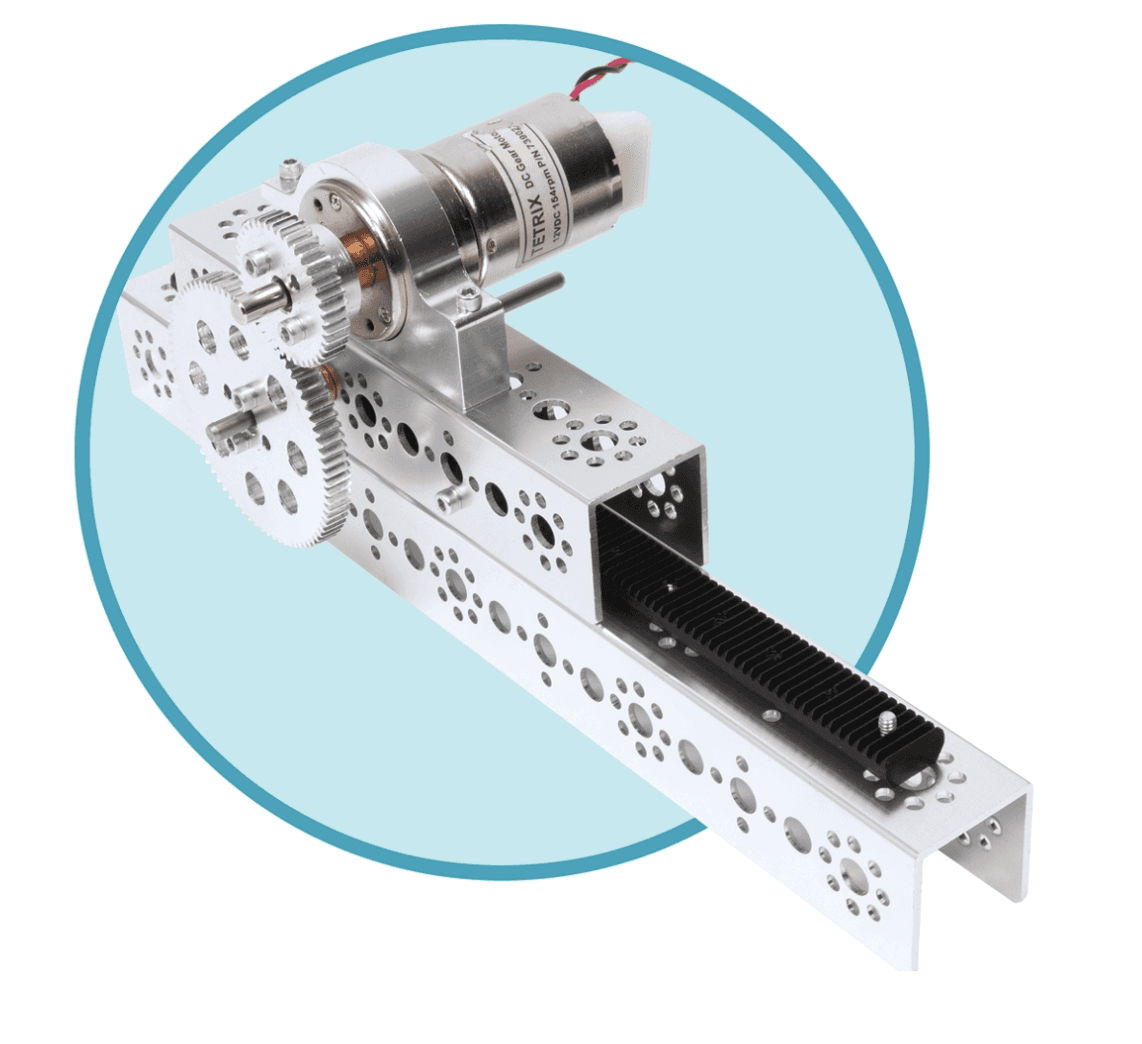 Thông thường, rack and pinion là một lựa chọn nhẹ (light-use option) phù hợp cho các đội FTC® khi cần chuyển động tuyến tính (linear extension).