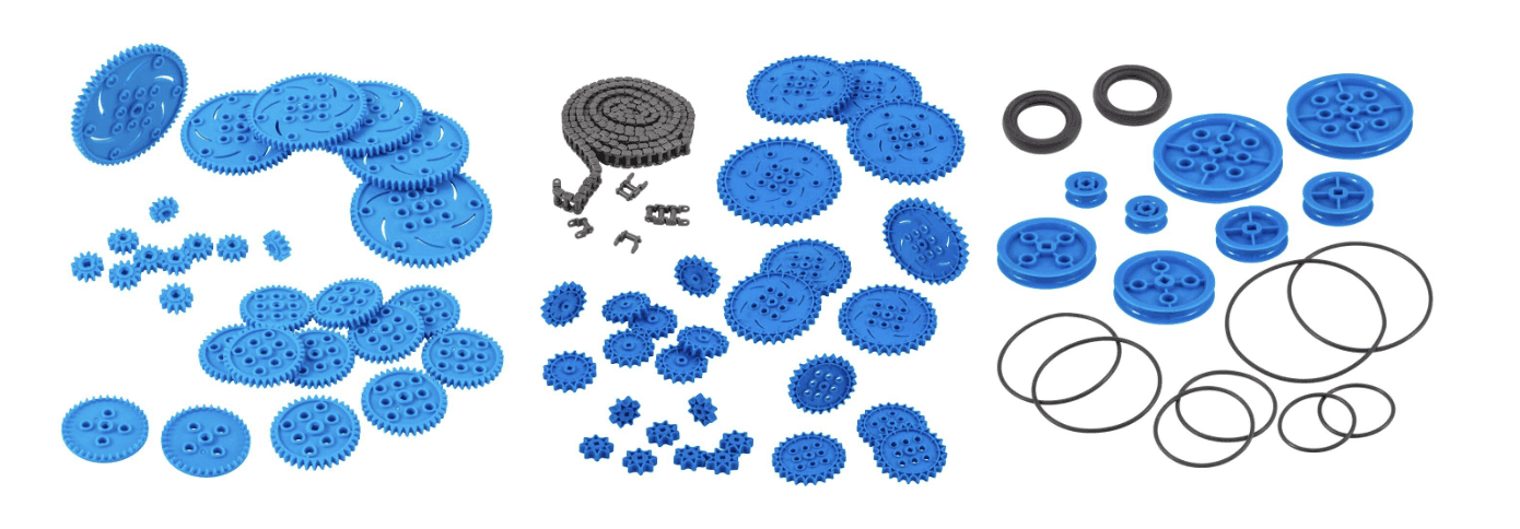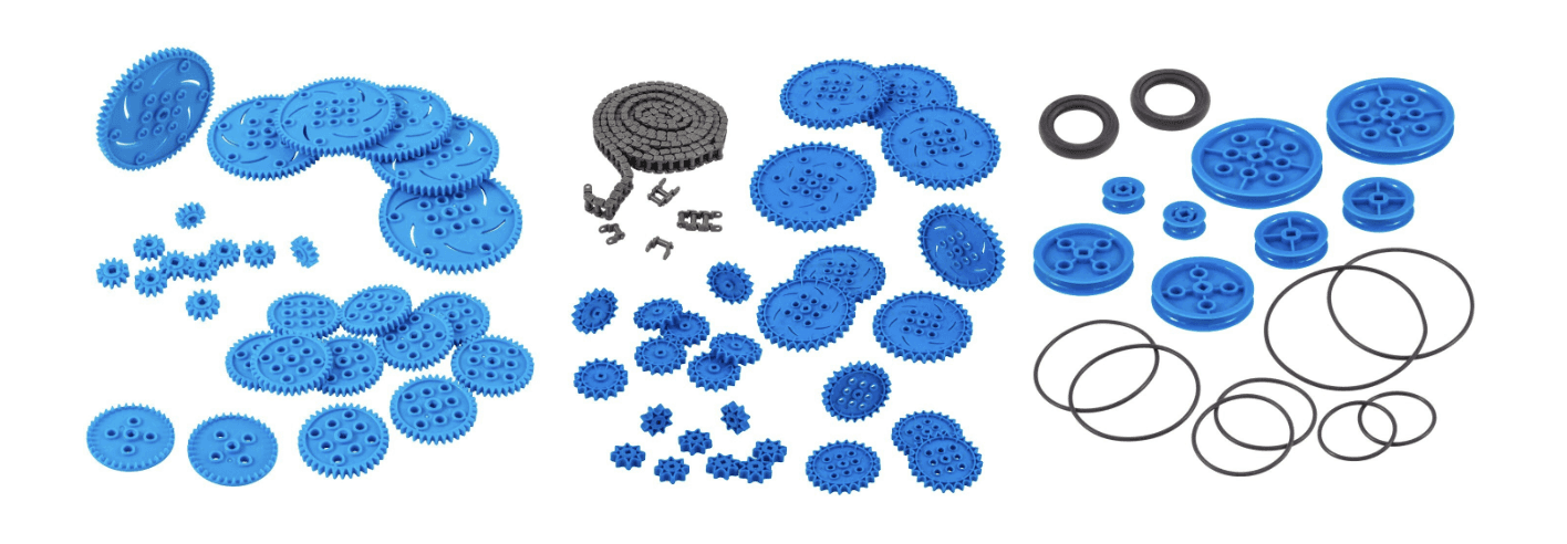 Khi người dùng mới bắt đầu lắp ráp các thiết kế robot tùy chỉnh của riêng mình, đến một thời điểm nào đó họ có thể muốn nhiều hơn từ các VEX IQ Smart Motors. Các VEX IQ Smart Motors có thể được xem là sở hữu hiệu năng và khả năng cảm biến tốt nhất trong số các hệ thống robot dạng lắp ráp nhanh (snap-together robotic system) hiện nay. Tuy nhiên, người dùng vẫn có thể muốn động cơ di chuyển nhanh hơn, nâng được vật nặng hơn, hoặc truyền chuyển động đến các cơ cấu ở xa động cơ. Các Bánh răng (Gears), Nhông (Sprockets) và Puly (Pulleys) của VEX IQ cho phép đáp ứng những yêu cầu này.
