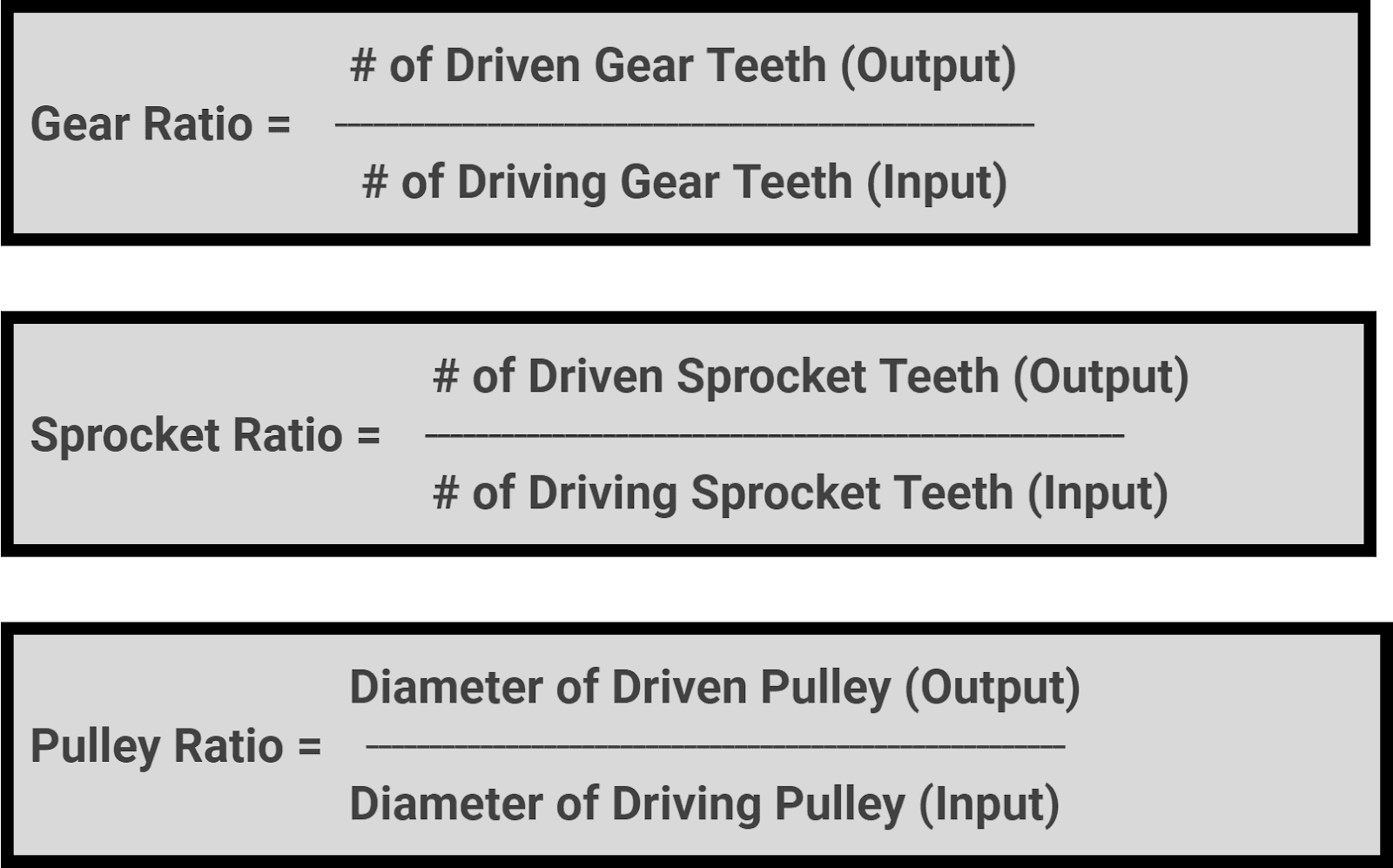 Cần lưu ý rằng khi sử dụng tỷ lệ đầu ra / đầu vào, các phép tính này không tính đến ma sát và các yếu tố khác trong hệ thống robot.