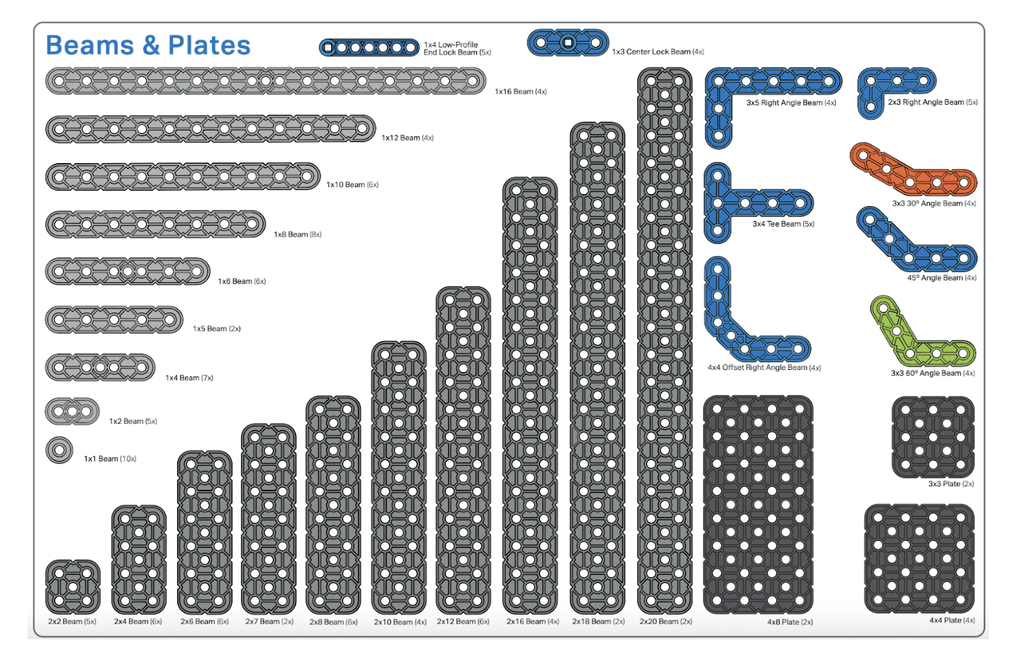 Tấm rất hữu ích để tăng cường độ cứng kết cấu cho robot. Chúng có nhiều kích thước chiều dài và chiều rộng khác nhau. Tấm có kết cấu lỗ lắp giống với thanh 2x. Kết cấu này bao gồm: một hàng lỗ lắp và một hàng lỗ lắp bị lệch ½ pitch. Tấm đặc biệt phù hợp để: xây dựng tháp robot, làm tấm ủi hoặc bất kỳ ứng dụng nào cần linh kiện kết cấu chắc chắn hoặc diện tích bề mặt lắp lớn