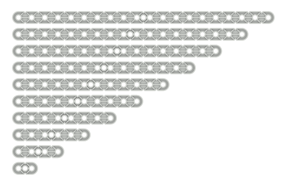 Một số thanh có thêm lỗ lắp ở vị trí trung tâm (center mounting hole) bên cạnh các lỗ lắp khác. Các thanh có đặc điểm này bao gồm: 1x2, 1x4, 1x6, 1x8, 1x10, 1x12, 1x14, 1x16, 1x18, 1x20