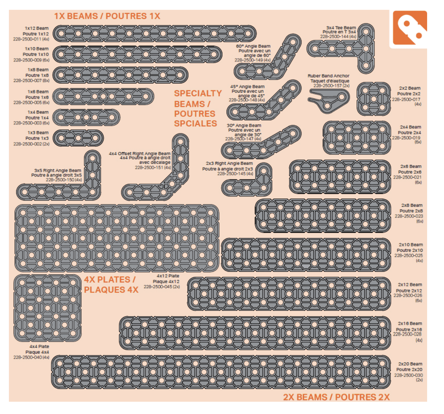 Thanh 1x là loại linh kiện kết cấu hẹp nhất trong hệ thống. Chúng rất phù hợp để lắp ráp các kết cấu chuyên biệt như bộ kẹp của cụm càng gắp hoặc dùng như một linh kiện kết nối tổng quát trên robot. Ví dụ, một thanh 1x có thể được sử dụng để tạo liên kết đỡ giữa một tháp và hệ truyền động. Mặc dù thanh 1x không cứng vững về mặt kết cấu bằng các linh kiện kết cấu khác, nhưng chúng có thể được ghép thành nhiều lớp với nhau, điều này giúp giảm đáng kể hiện tượng cong và xoắn.
